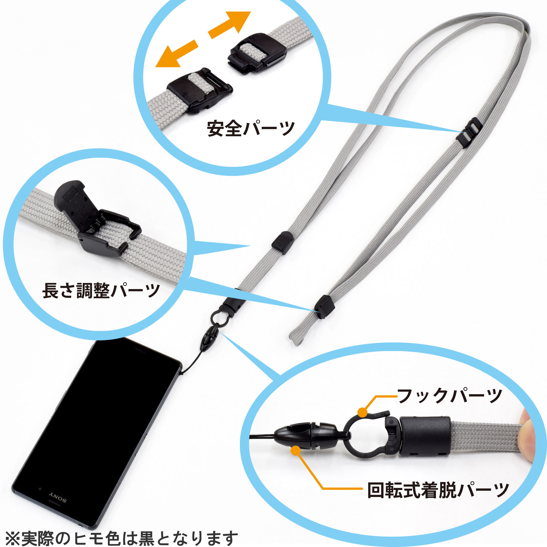 スマホや携帯電話、ネームカード等の落下・紛失防止にお役立て頂けます。